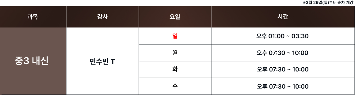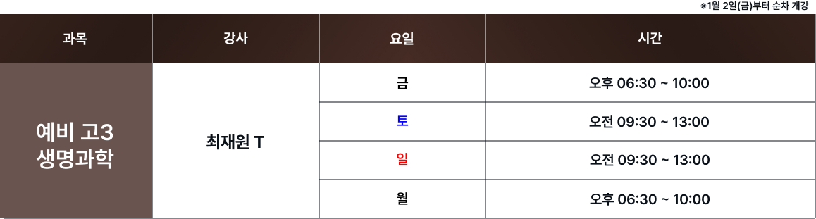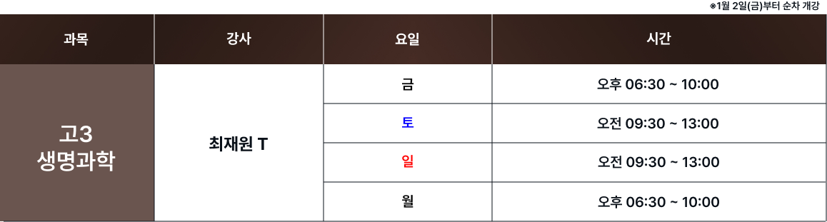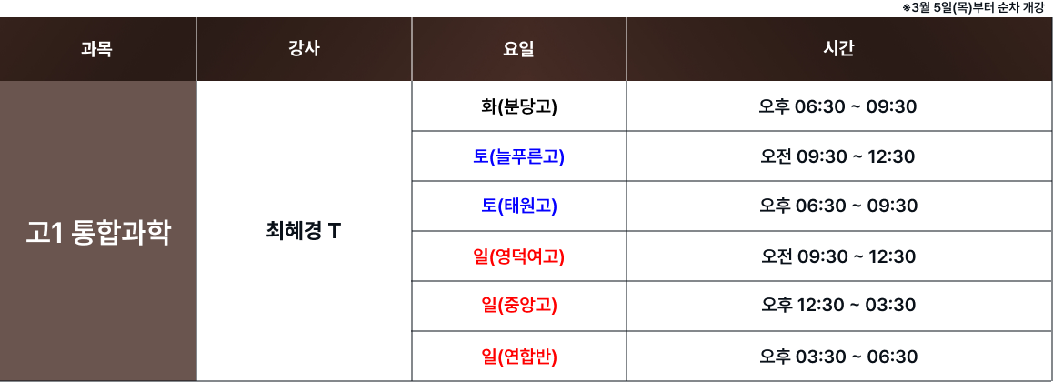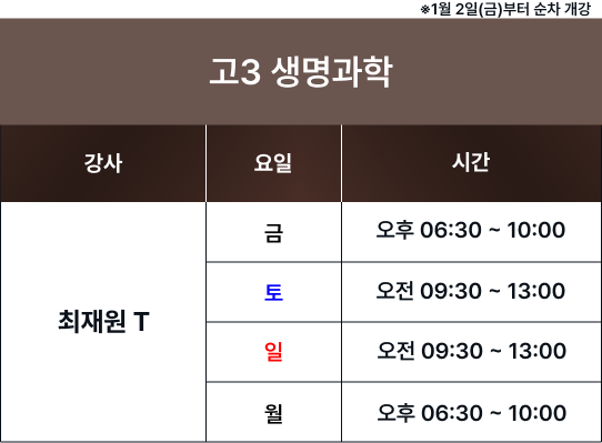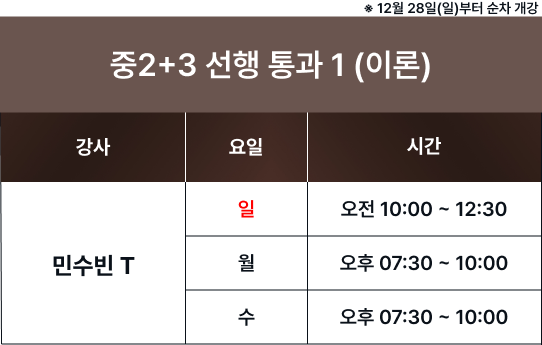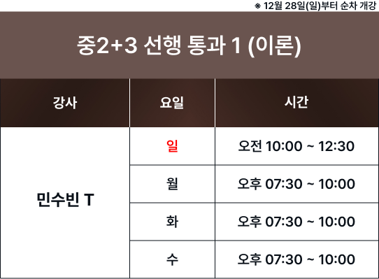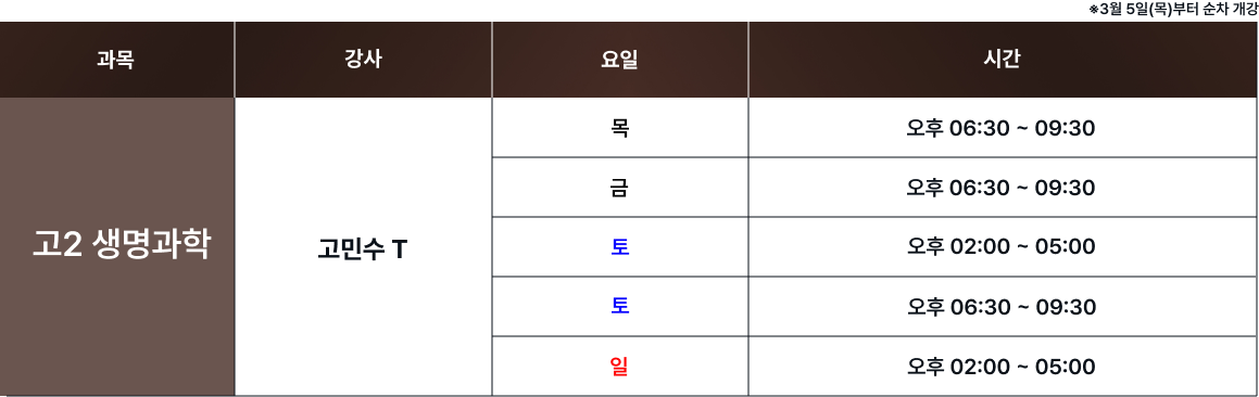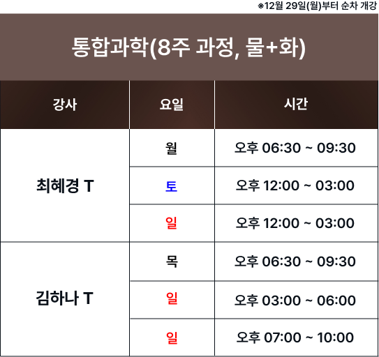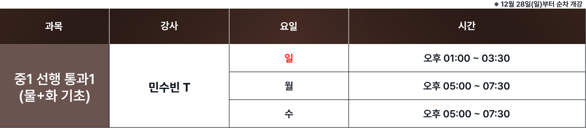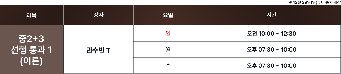 체계적인 과목별 시간표를 통해 최고의 교육을 제공합니다. 보강 및 피드백 일정은로그인 후 확인 가능합니다. 로그인 FullCalendar with Custom Colors 수업 특징 및 커리큘럼 확인하기 카톡 상담하기 전화 상담하기 네이버 카페 방문